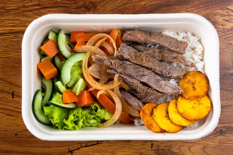 Carne de res con tomate y cebolla acompañada de los mejores carbohidratos para llevar tu alimentación a otro nivel