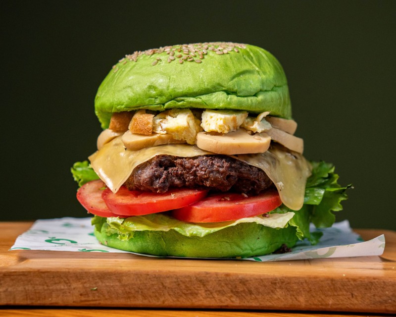 Hamburguesa ligera y refrescante en pan brioche, con carne de res jugosa, lechuga crespa y tomate. Incluye champiñones salteados y un topping de queso mozzarella y huevo batido que aporta sua