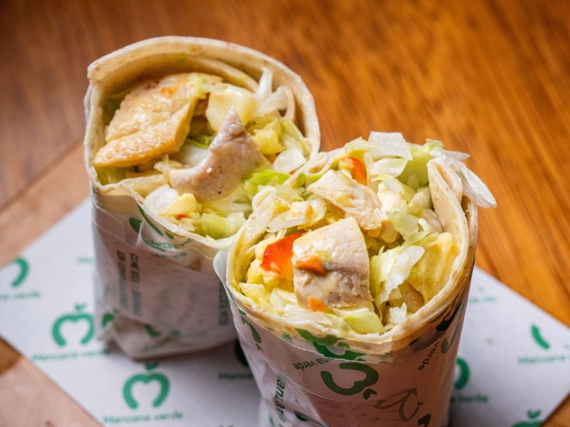 Wrap nutritivo inspirado en los sabores de los llanos, preparado en tortilla integral con pimentón, lechuga crespa y zanahoria. Incluye aguacate, maíz, plátano maduro en cubos y semillas de c