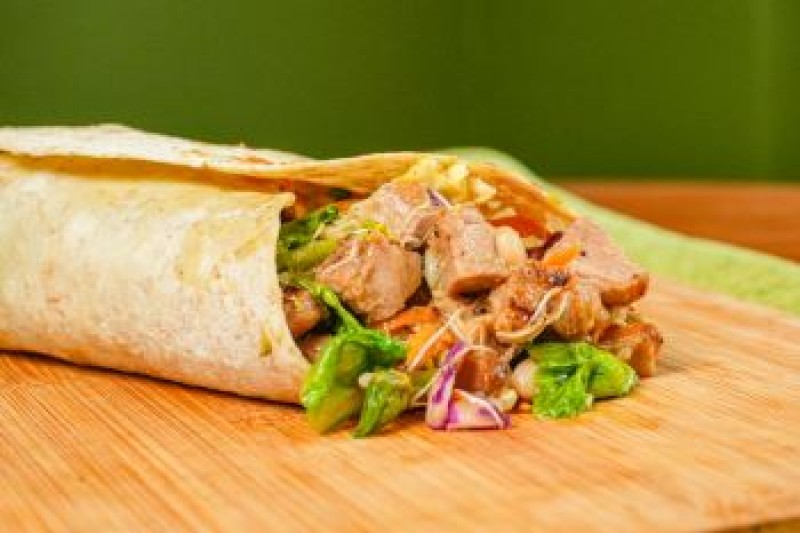 Tortilla de trigo saludable con las mas frescas hortalizas y los mejores ingredientes, atun , queso, brocoli, kion, tomate cherry, col morada, kashu aderezado en una espectacular salsa rach.