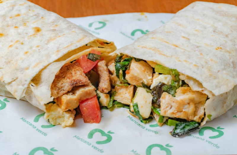 Tortilla de trigo saludable con las mas frescas hortalizas y los mejores ingredientes, pechuga, queso, tomate, espinaca, albahaca,