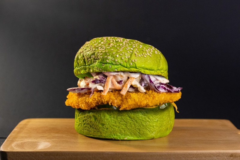 Pechuga de Pollo 120g tipo Katsu crujiente con pickles encurtidos, coleslaw y nuestra salsa burger. ¡Atrevete a probarlo!